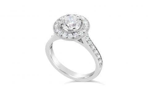 Round Brilliant Cut Pave Set Halo Style Diamond Engagement Ring