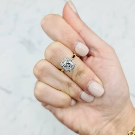Two-Tone Halo Style Cushion Cut Diamond Engagement Ring