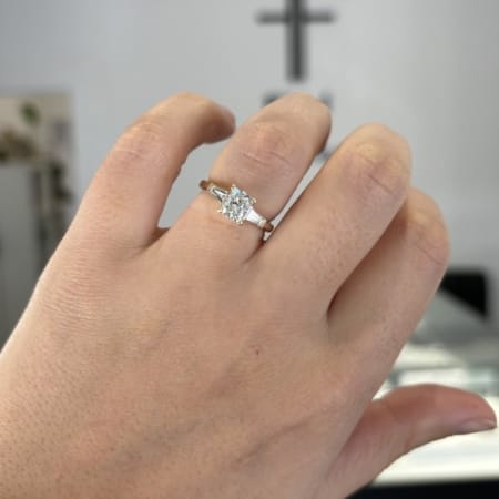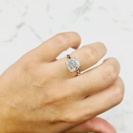Long Cushion Cut Engagement Ring With Tapered Baguette Diamonds