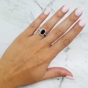 Emerald Cut Black Diamond Halo Design Engagement Ring