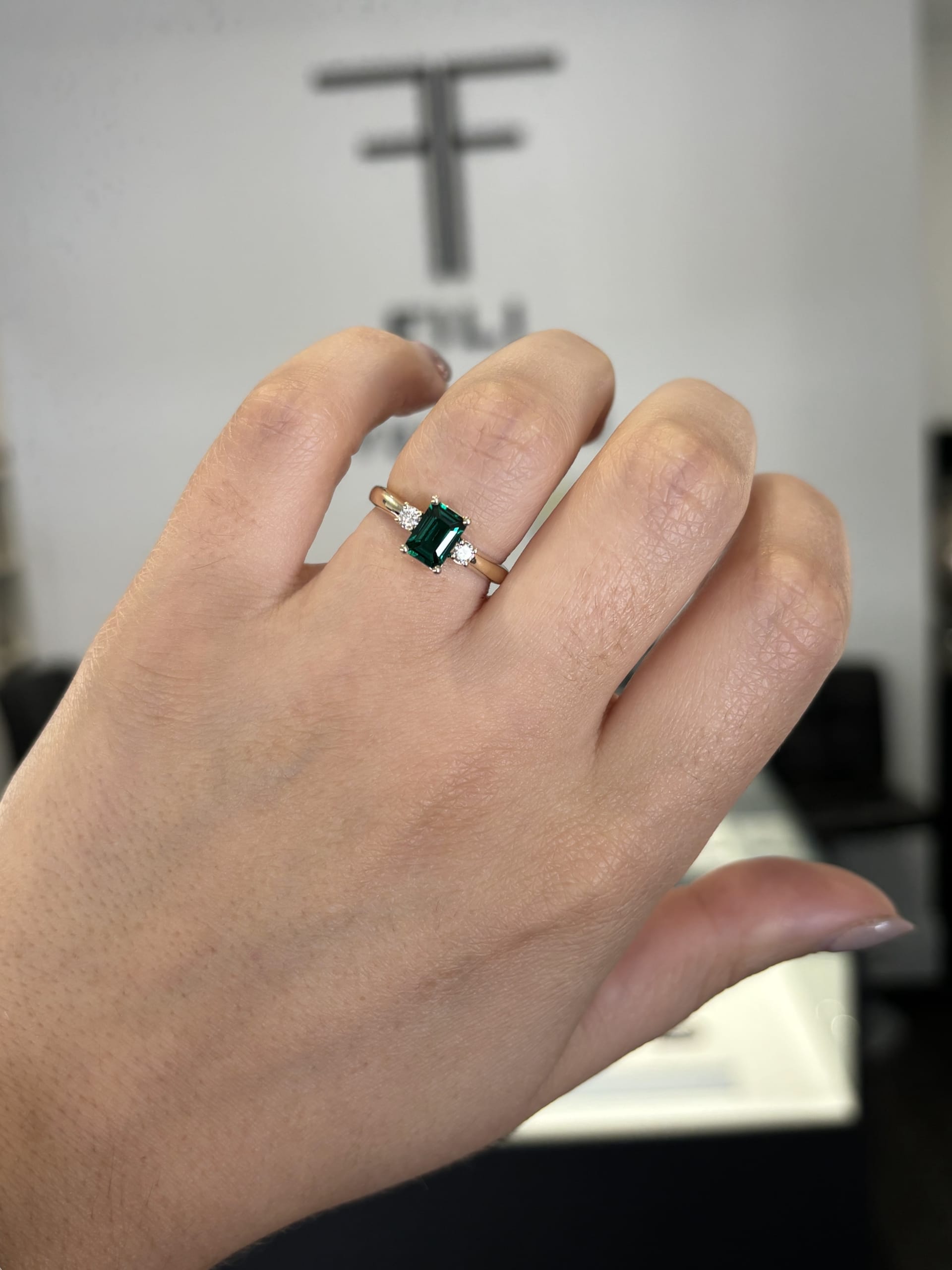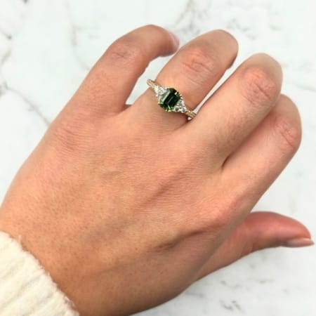 Emerald Cut Green Tourmaline Ring with Diamonds