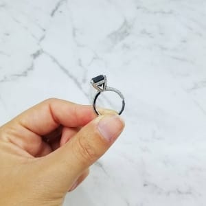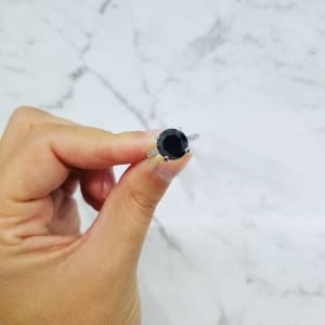 Round Black Diamond Engagement Ring With Claw Set Diamond Band