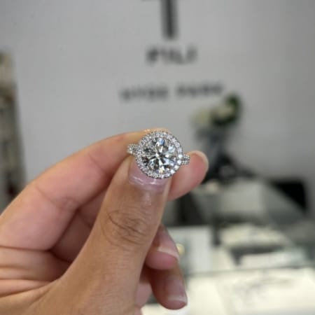 Round Brilliant Cut Diamond Trilogy / Halo Design Ring