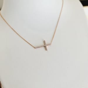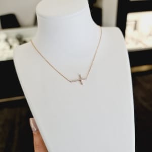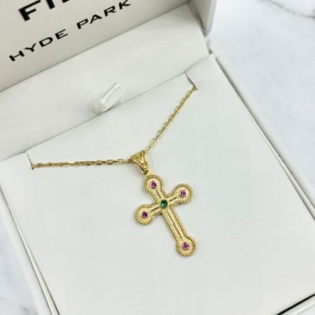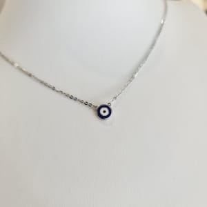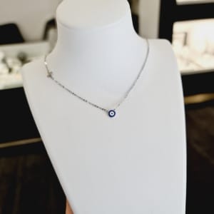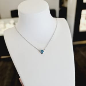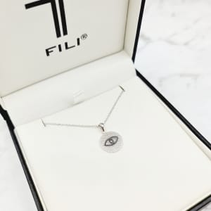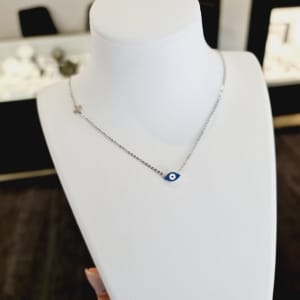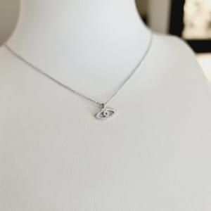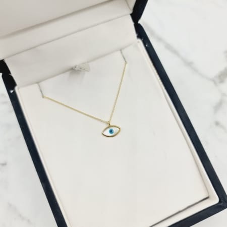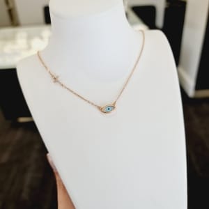 White Gold Almond Shape Enamel Eye & Cross Necklace