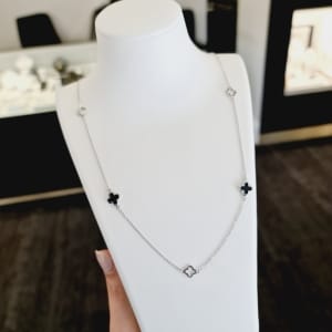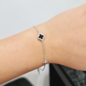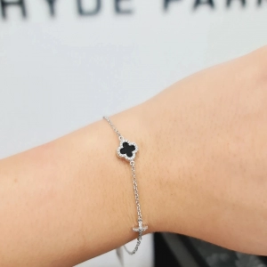 White Gold Black Onyx Four Leaf Clover/Cross Bracelet