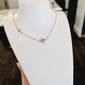 Rose Gold Turquoise Four Leaf Clover/Cross Necklace