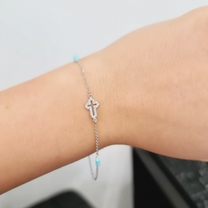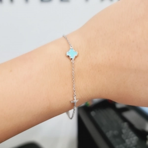 White Gold Turquoise Four Leaf Clover/Cross Bracelet