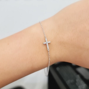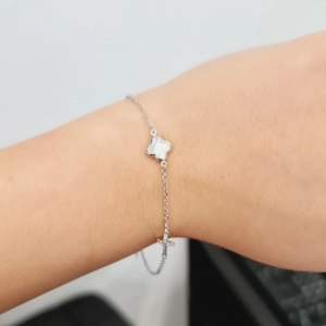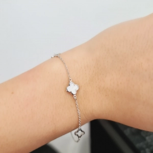 White Gold Mother Of Pearl Four Leaf Clover/Cross Bracelet