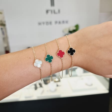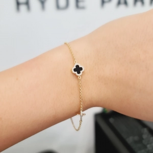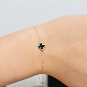 Yellow Gold Black Onyx Four Leaf Clover Bracelet