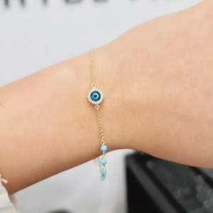Yellow Gold Greek Eye/Turquoise Bracelet