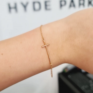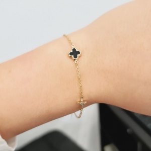 Yellow Gold Black Onyx Four Leaf Clover/Cross Bracelet