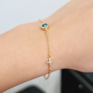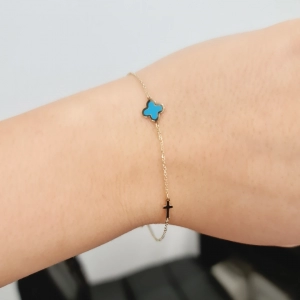 Yellow Gold Turquoise Four Leaf Clover/Cross Bracelet
