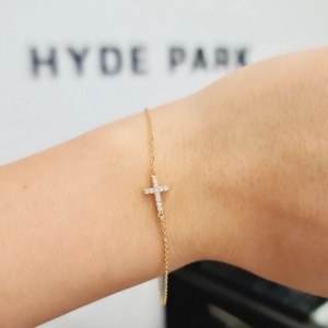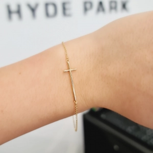 Yellow Gold Mother Of Pearl Four Leaf Clover/Cross Bracelet