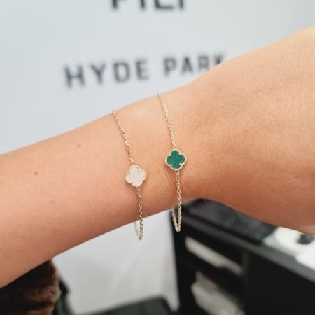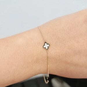 White Gold Mother Of Pearl Four Leaf Clover Bracelet