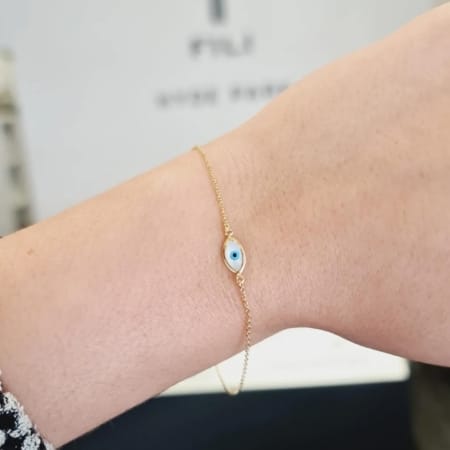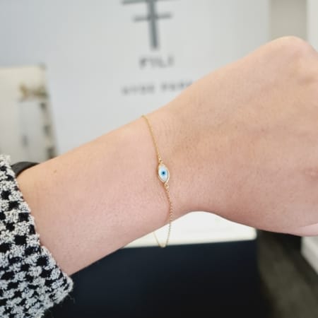 Yellow Gold Almond Shape Greek Eye Bracelet