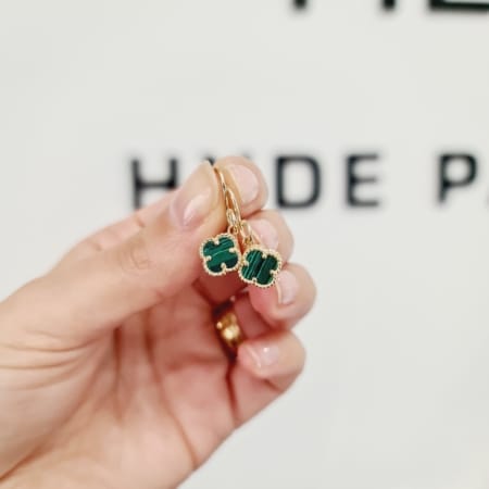 Yellow Gold Four Leaf Clover Malachite Drop Earrings