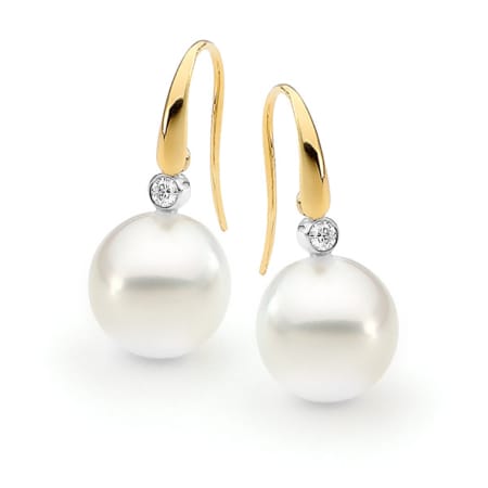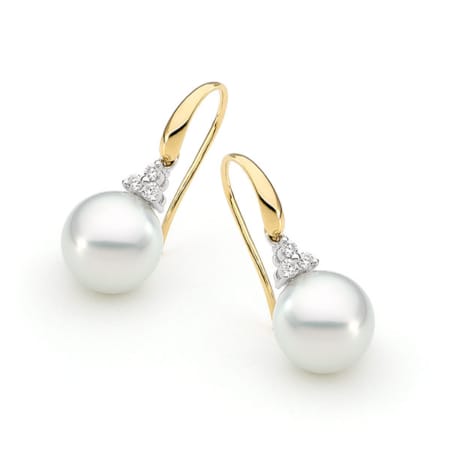 Allure Bezel Set Diamond French Hook Pearl Earrings