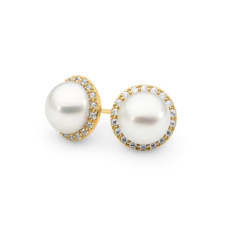 Allure Diamond Halo Button Pearl Earrings